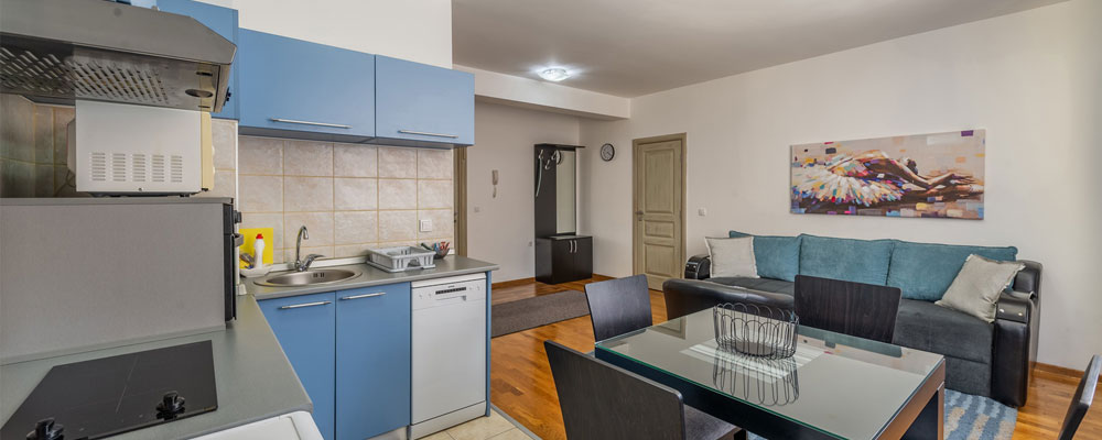 It has three comfortable, luxurious apartments on the first floor of the four-storey building with raised ground floor, which houses the Maxi store, so the shopping is easier.